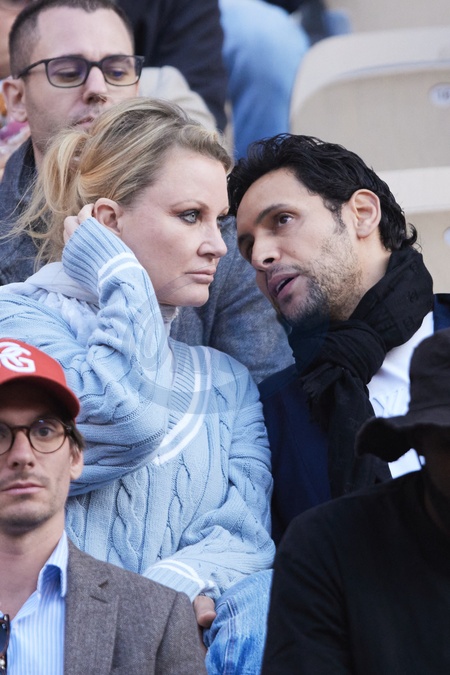 Exclusif - Sandra Lee et son fiancé Ben Youcef, pendant le match A.Zverev Vs A.de Minaur, lors des Internationaux de France de Tennis de Roland Garros 2024 à Paris