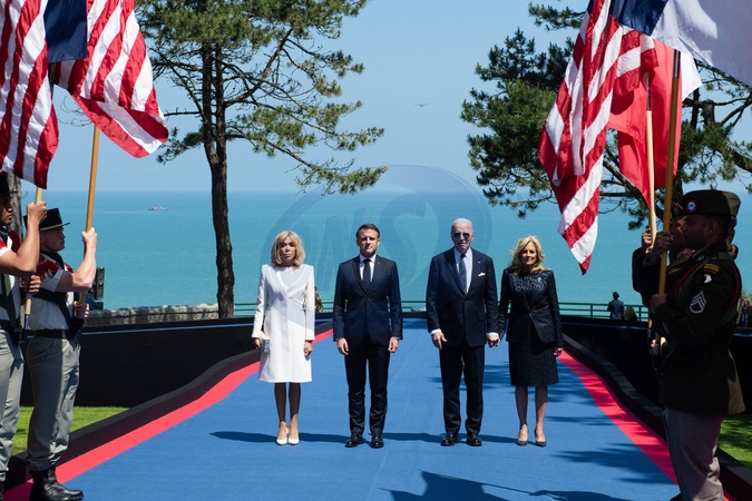 Cérémonie Franco-américaine au cimetière américain de Colleville sur Mer dans le cadre de la commémoration du 80ème anniversaire du débarquement en Normandie (D-Day) le 6 juin 2024. © Jeanne Accorsini / Pool / Bestimage Brigitte Macron, first lady of France and wife of Emmanuel Macron, president of French republic, Joe Biden president of the United states and his wife Jill Bien. Commemoration at Normandy American Cemetery marks the 80th anniversary of D-Day landings along the Normandy coast during the World War II. This event ultimately led to the liberation of Europe. Thursday June 6, 2024, Colleville-sur-mer, Normandy, France.//ACCORSINIJEANNE_COLLEVILLE.007/Credit:JEANNE ACCORSINI/SIPA/2406070033