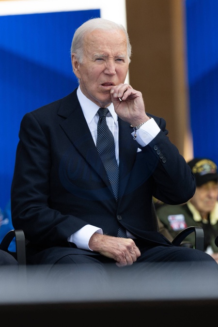 Cérémonie Franco-américaine au cimetière américain de Colleville sur Mer dans le cadre de la commémoration du 80ème anniversaire du débarquement en Normandie (D-Day) le 6 juin 2024. © Jeanne Accorsini / Pool / Bestimage Joe Biden, President of the United States. Commemoration at Normandy American Cemetery marks the 80th anniversary of D-Day landings along the Normandy coast during the World War II. This event ultimately led to the liberation of Europe. Thursday June 6, 2024, Colleville-sur-mer, Normandy, France.//ACCORSINIJEANNE_COLLEVILLE.0028/Credit:JEANNE ACCORSINI/SIPA/2406070034
