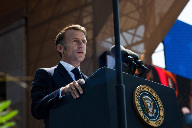 Cérémonie Franco-américaine au cimetière américain de Colleville sur Mer dans le cadre de la commémoration du 80ème anniversaire du débarquement en Normandie (D-Day) le 6 juin 2024. © Jeanne Accorsini / Pool / Bestimage Emmanuel Macron, president of France. Commemoration at Normandy American Cemetery marks the 80th anniversary of D-Day landings along the Normandy coast during the World War II. This event ultimately led to the liberation of Europe. Thursday June 6, 2024, Colleville-sur-mer, Normandy, France.//ACCORSINIJEANNE_COLLEVILLE.0032/Credit:JEANNE ACCORSINI/SIPA/2406070034