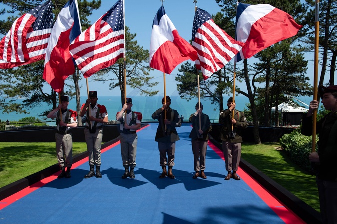 Cérémonie Franco-américaine au cimetière américain de Colleville sur Mer dans le cadre de la commémoration du 80ème anniversaire du débarquement en Normandie (D-Day)