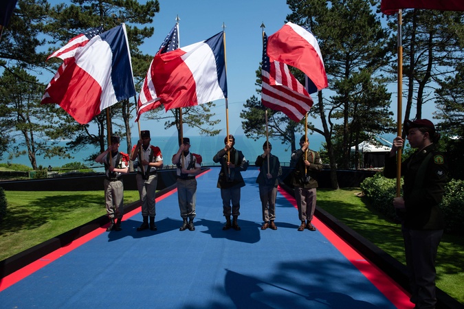 Cérémonie Franco-américaine au cimetière américain de Colleville sur Mer dans le cadre de la commémoration du 80ème anniversaire du débarquement en Normandie (D-Day)