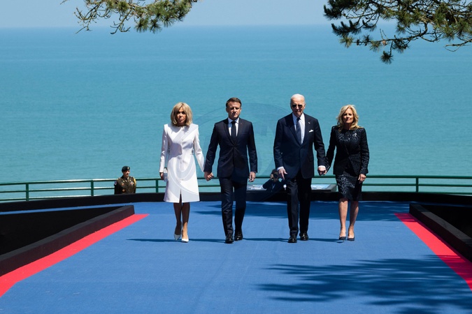 Cérémonie Franco-américaine au cimetière américain de Colleville sur Mer dans le cadre de la commémoration du 80ème anniversaire du débarquement en Normandie (D-Day) le 6 juin 2024. © Jeanne Accorsini / Pool / Bestimage Brigitte Macron, first lady of France and wife of Emmanuel Macron, president of French republic, Joe Biden president of the United states and his wife Jill Bien. Commemoration at Normandy American Cemetery marks the 80th anniversary of D-Day landings along the Normandy coast during the World War II. This event ultimately led to the liberation of Europe. Thursday June 6, 2024, Colleville-sur-mer, Normandy, France.//ACCORSINIJEANNE_COLLEVILLE.001/Credit:JEANNE ACCORSINI/SIPA/2406070032