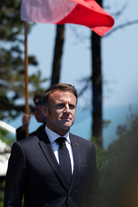 Cérémonie Franco-américaine au cimetière américain de Colleville sur Mer dans le cadre de la commémoration du 80ème anniversaire du débarquement en Normandie (D-Day) le 6 juin 2024. © Jeanne Accorsini / Pool / Bestimage Emmanuel Macron, president of France. Commemoration at Normandy American Cemetery marks the 80th anniversary of D-Day landings along the Normandy coast during the World War II. This event ultimately led to the liberation of Europe. Thursday June 6, 2024, Colleville-sur-mer, Normandy, France.//ACCORSINIJEANNE_COLLEVILLE.009/Credit:JEANNE ACCORSINI/SIPA/2406070033