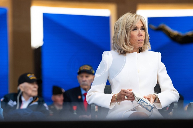 Cérémonie Franco-américaine au cimetière américain de Colleville sur Mer dans le cadre de la commémoration du 80ème anniversaire du débarquement en Normandie (D-Day) le 6 juin 2024. © Jeanne Accorsini / Pool / Bestimage Brigitte Macron first lady of France. Commemoration at Normandy American Cemetery marks the 80th anniversary of D-Day landings along the Normandy coast during the World War II. This event ultimately led to the liberation of Europe. Thursday June 6, 2024, Colleville-sur-mer, Normandy, France.//ACCORSINIJEANNE_COLLEVILLE.0025/Credit:JEANNE ACCORSINI/SIPA/2406070034