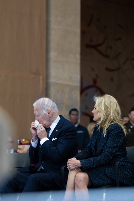 Cérémonie Franco-américaine au cimetière américain de Colleville sur Mer dans le cadre de la commémoration du 80ème anniversaire du débarquement en Normandie (D-Day) le 6 juin 2024. © Jeanne Accorsini / Pool / Bestimage Joe Biden, President of the United States and his wife Jill Biden. Commemoration at Normandy American Cemetery marks the 80th anniversary of D-Day landings along the Normandy coast during the World War II. This event ultimately led to the liberation of Europe. Thursday June 6, 2024, Colleville-sur-mer, Normandy, France.//ACCORSINIJEANNE_COLLEVILLE.0037/Credit:JEANNE ACCORSINI/SIPA/2406070035