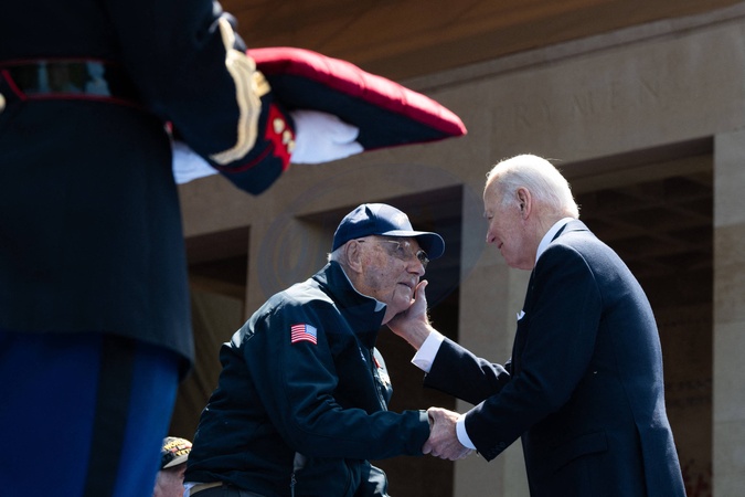 Cérémonie Franco-américaine au cimetière américain de Colleville sur Mer dans le cadre de la commémoration du 80ème anniversaire du débarquement en Normandie (D-Day) le 6 juin 2024. © Jeanne Accorsini / Pool / Bestimage Joe Biden, President of the United States and a veteran.Commemoration at Normandy American Cemetery marks the 80th anniversary of D-Day landings along the Normandy coast during the World War II. This event ultimately led to the liberation of Europe. Thursday June 6, 2024, Colleville-sur-mer, Normandy, France.//ACCORSINIJEANNE_COLLEVILLE.0042/Credit:JEANNE ACCORSINI/SIPA/2406070035