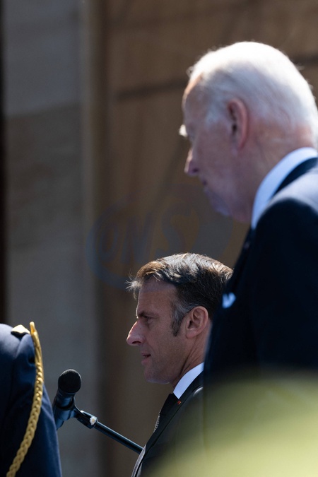 Cérémonie Franco-américaine au cimetière américain de Colleville sur Mer dans le cadre de la commémoration du 80ème anniversaire du débarquement en Normandie (D-Day) le 6 juin 2024. © Jeanne Accorsini / Pool / Bestimage Emmanuel Macron, French President and Joe Biden, President of the United States. Commemoration at Normandy American Cemetery marks the 80th anniversary of D-Day landings along the Normandy coast during the World War II. This event ultimately led to the liberation of Europe. Thursday June 6, 2024, Colleville-sur-mer, Normandy, France.//ACCORSINIJEANNE_COLLEVILLE.0047/Credit:JEANNE ACCORSINI/SIPA/2406070035