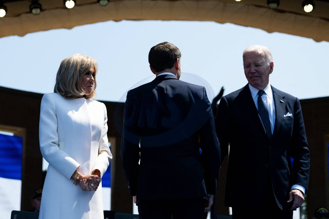 Cérémonie Franco-américaine au cimetière américain de Colleville sur Mer dans le cadre de la commémoration du 80ème anniversaire du débarquement en Normandie (D-Day) le 6 juin 2024. © Jeanne Accorsini / Pool / Bestimage Brigitte Macron, first lady of France and wife of Emmanuel Macron, president of French republic, Joe Biden president of the United states. Commemoration at Normandy American Cemetery marks the 80th anniversary of D-Day landings along the Normandy coast during the World War II. This event ultimately led to the liberation of Europe. Thursday June 6, 2024, Colleville-sur-mer, Normandy, France.//ACCORSINIJEANNE_COLLEVILLE.0051/Credit:JEANNE ACCORSINI/SIPA/2406070036