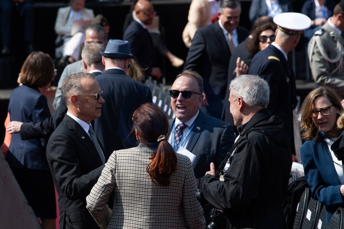 Cérémonie Franco-américaine au cimetière américain de Colleville sur Mer dans le cadre de la commémoration du 80ème anniversaire du débarquement en Normandie (D-Day) le 6 juin 2024. © Jeanne Accorsini / Pool / Bestimage Tom Hanks Actor and director. Commemoration at Normandy American Cemetery marks the 80th anniversary of D-Day landings along the Normandy coast during the World War II. This event ultimately led to the liberation of Europe. Thursday June 6, 2024, Colleville-sur-mer, Normandy, France.//ACCORSINIJEANNE_COLLEVILLE.00102/Credit:JEANNE ACCORSINI/SIPA/2406070038