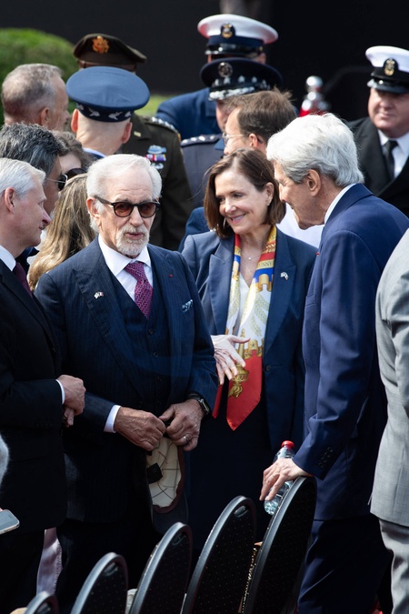 Cérémonie Franco-américaine au cimetière américain de Colleville sur Mer dans le cadre de la commémoration du 80ème anniversaire du débarquement en Normandie (D-Day) le 6 juin 2024. © Jeanne Accorsini / Pool / Bestimage Steven Spielberg American Film Director and John Kerry Former U.S. Secretary of State. Commemoration at Normandy American Cemetery marks the 80th anniversary of D-Day landings along the Normandy coast during the World War II. This event ultimately led to the liberation of Europe. Thursday June 6, 2024, Colleville-sur-mer, Normandy, France.//ACCORSINIJEANNE_COLLEVILLE.00105/Credit:JEANNE ACCORSINI/SIPA/2406070038