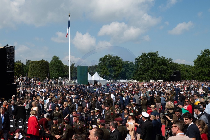 Cérémonie Franco-américaine au cimetière américain de Colleville sur Mer dans le cadre de la commémoration du 80ème anniversaire du débarquement en Normandie (D-Day) le 6 juin 2024. © Jeanne Accorsini / Pool / Bestimage Commemoration at Normandy American Cemetery marks the 80th anniversary of D-Day landings along the Normandy coast during the World War II. This event ultimately led to the liberation of Europe. Thursday June 6, 2024, Colleville-sur-mer, Normandy, France.//ACCORSINIJEANNE_COLLEVILLE.00107/Credit:JEANNE ACCORSINI/SIPA/2406070038
