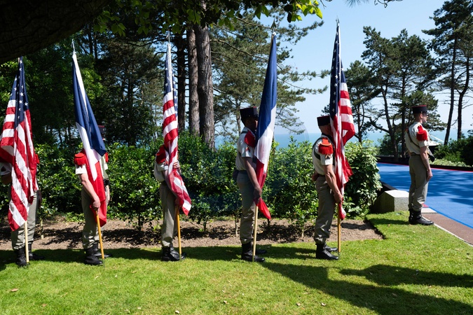 Cérémonie Franco-américaine au cimetière américain de Colleville sur Mer dans le cadre de la commémoration du 80ème anniversaire du débarquement en Normandie (D-Day)