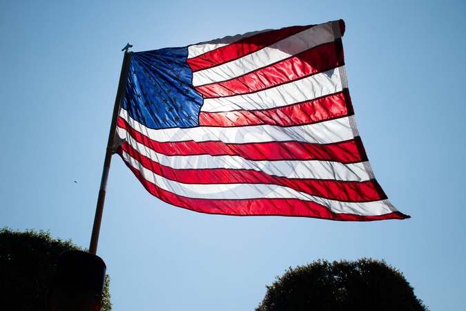 Cérémonie Franco-américaine au cimetière américain de Colleville sur Mer dans le cadre de la commémoration du 80ème anniversaire du débarquement en Normandie (D-Day) le 6 juin 2024. © Jeanne Accorsini / Pool / Bestimage American flag. Commemoration at Normandy American Cemetery marks the 80th anniversary of D-Day landings along the Normandy coast during the World War II. This event ultimately led to the liberation of Europe. Thursday June 6, 2024, Colleville-sur-mer, Normandy, France.//ACCORSINIJEANNE_COLLEVILLE.00118/Credit:JEANNE ACCORSINI/SIPA/2406070039