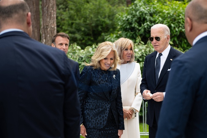Cérémonie Franco-américaine au cimetière américain de Colleville sur Mer dans le cadre de la commémoration du 80ème anniversaire du débarquement en Normandie (D-Day) le 6 juin 2024. © Jeanne Accorsini / Pool / Bestimage Commemoration at Normandy American Cemetery marks the 80th anniversary of D-Day landings along the Normandy coast during the World War II. This event ultimately led to the liberation of Europe. Thursday June 6, 2024, Colleville-sur-mer, Normandy, France.//ACCORSINIJEANNE_COLLEVILLE.0084/Credit:JEANNE ACCORSINI/SIPA/2406070040