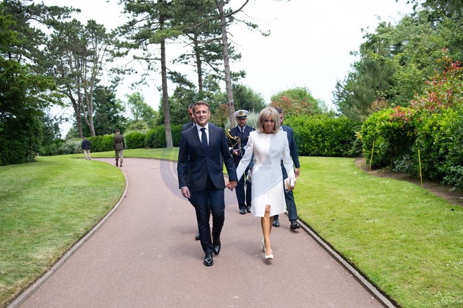 Cérémonie Franco-américaine au cimetière américain de Colleville sur Mer dans le cadre de la commémoration du 80ème anniversaire du débarquement en Normandie (D-Day) le 6 juin 2024. © Jeanne Accorsini / Pool / Bestimage Emmanuel Macron , president of French republic and his wife Brigitte Macron first lady of France. Commemoration at Normandy American Cemetery marks the 80th anniversary of D-Day landings along the Normandy coast during the World War II. This event ultimately led to the liberation of Europe. Thursday June 6, 2024, Colleville-sur-mer, Normandy, France.//ACCORSINIJEANNE_COLLEVILLE.0087/Credit:JEANNE ACCORSINI/SIPA/2406070040