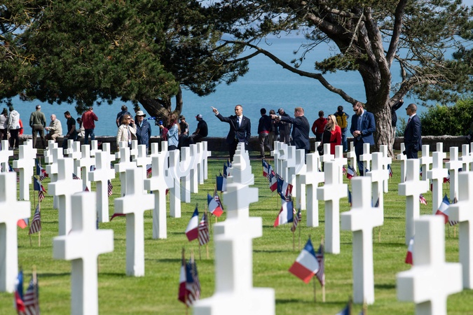 Ceremonia francusko-amerykańska na amerykańskim cmentarzu w Colleville sur Mer w ramach obchodów 80. rocznicy lądowania w Normandii (D-Day