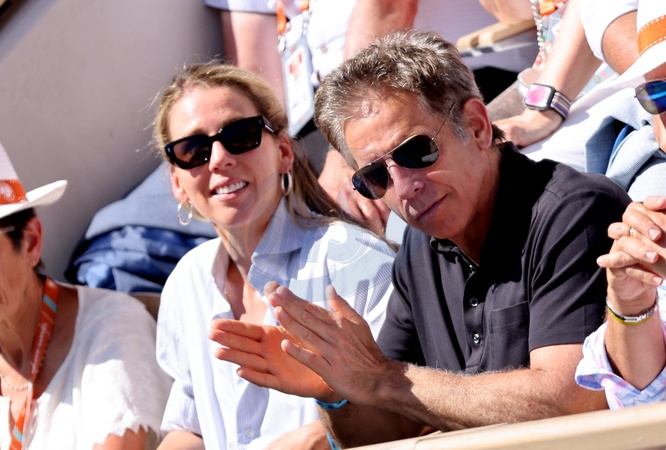 Ben Stiller avec sa femme Christine Taylor - Célébrités dans les tribunes des Internationaux de France de tennis de Roland Garros 2024 à Paris le 7 juin 2024. © Jacovides-Moreau/Bestimage Celebrities in the stands of the 2024 Roland Garros French Open tennis tournament in Paris on June 7, 2024.