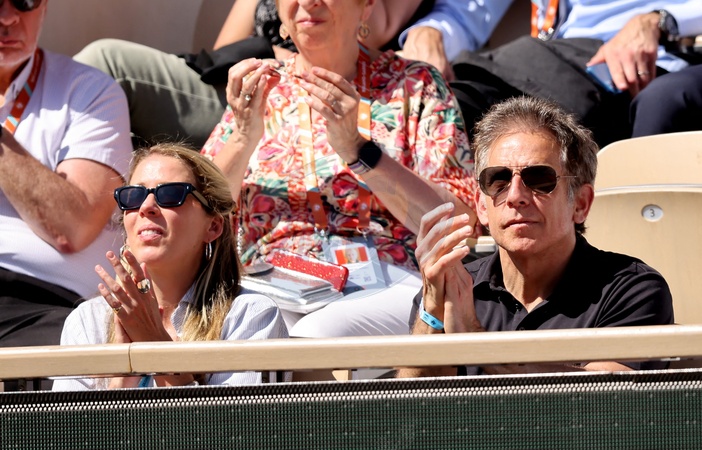 Ben Stiller avec sa femme Christine Taylor - Célébrités dans les tribunes des Internationaux de France de tennis de Roland Garros 2024 à Paris le 7 juin 2024. © Jacovides-Moreau/Bestimage Celebrities in the stands of the 2024 Roland Garros French Open tennis tournament in Paris on June 7, 2024.