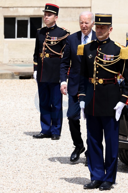 Le président français et la première dame accueillent le président américain Joe Biden et sa femme au palais de l'Elysee pour une visite d'état. Le 8 juin 2024. © Stéphane Lemouton / Bestimage The President of the United States and his wife arrive at the Elysée Palace in Paris on their state visit to France. June 8, 2024