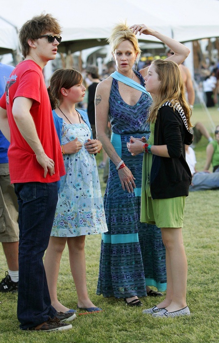 Melanie Griffith z dziecmi podczas Coachella Valley Music & Arts Festival, USA