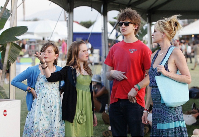 Melanie Griffith z dziecmi podczas Coachella Valley Music & Arts Festival, USA