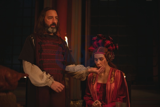 Decameron. (L to R) Tony Hale as Sirisco and Zosia Mamet as Pampinea in Episode 103 of "Decameron" (2024)., Credit:Giulia Parmigiani/Netflix / Avalon