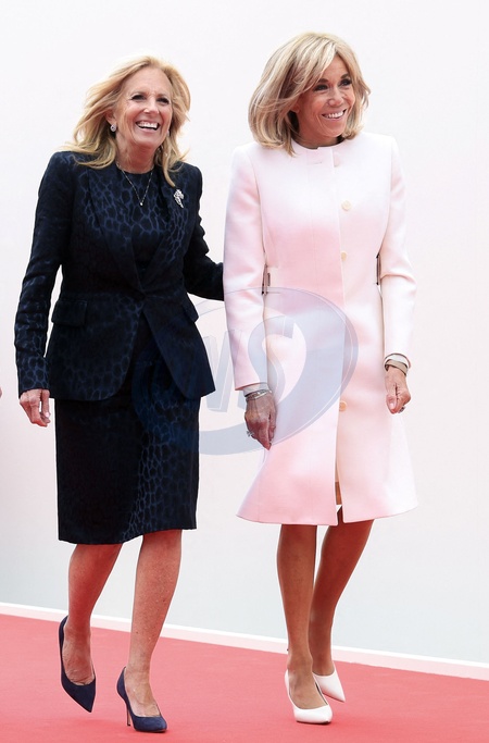 La première dame, Brigitte Macron et Jill Biden lors de la cérémonie internationale du 80ème anniversaire du débarquement à Omaha Beach, le 6 juin 2024. © Stéphane Lemouton / Bestimage Brigitte Macron and Jill Biden at the international ceremony at Omaha Beach as part of the commemoration of the 80th anniversary of the Normandy landings (D-Day) on june 6th 2024