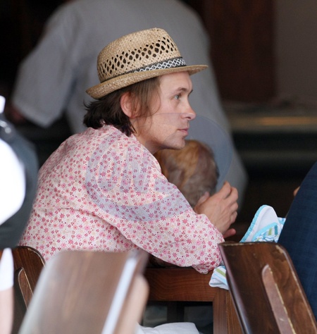 Mark Owen z dziewczyna i synem na lunchu, Londyn