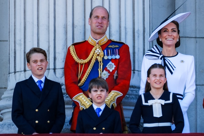 Prince George, Prince Louis, Prince William, Prince of Wales, Catherine, Princess of Wales and Princess Charlotte on the palace balcony following Trooping the Colour on Saturday 15 June 2024 at Buckingham Palace, London. Trooping the Colour is a traditional parade held to mark the British Sovereign's official birthday. This year the colours were trooped by The Irish Guards. ., Credit:Julie Edwards / Avalon
