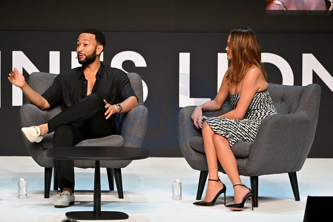 John Legend i jego żona Chrissy Teigen biorą udział w konferencji prowadzonej przez Karę Swisher podczas 71. edycji Cannes Lions w Palais des Festivals w Cannes