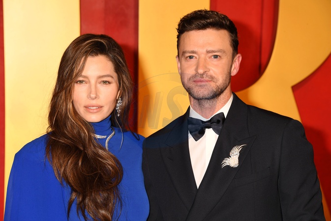 BEVERLY HILLS, CALIFORNIA - MARCH 10: (L-R) Jessica Biel and Justin Timberlake attend the 2024 Vanity Fair Oscar Party hosted by Radhika Jones at Wallis Annenberg Center for the Performing Arts on March 10, 2024 in Beverly Hills, California., Credit:Jeffrey Mayer / Avalon