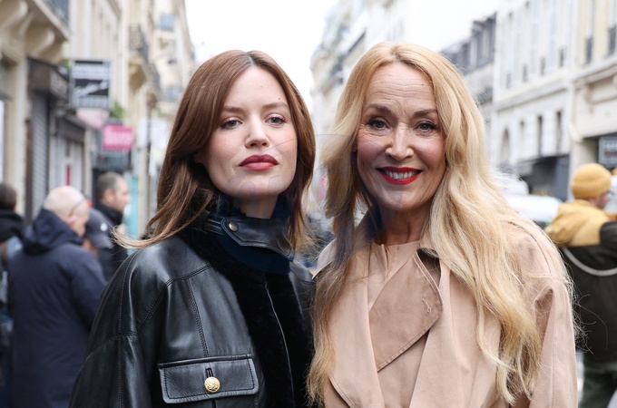 Info - Georgia May Jagger est enceinte de son premier enfant - Georgia May Jagger et sa mère Jerry Hall - Arrivées au défilé de mode Chloe collection femme automne/hiver 2024-2025 lors de la fashion week à Paris (PFW) le 29 février 2024. © Denis Guignebourg / Bestimage Arrivals at the Chloe women's autumn/winter 2024-2025 fashion show during Paris Fashion Week (PFW) on 29 February 2024.