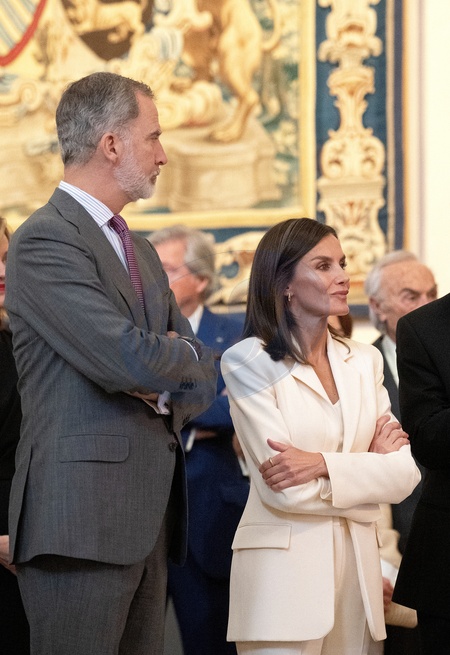 Król Hiszpanii Filip VI i królowa Letycja inaugurują wystawę „Felipe VI 2014 - 2024. Dekada historii Korony Hiszpanii” w Pałacu Królewskim w Madrycie