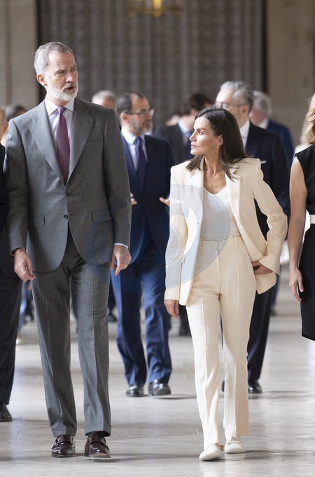 Le roi Felipe VI et la reine Letizia d'Espagne, inaugurent l'exposition "Felipe VI 2014 - 2024. Une décennie d'histoire de la Couronne d'Espagne" au Palais Royal à Madrid, le 20 juin 2024. King Felipe VI and Queen Letizia visit 'Felipe VI: A Decade Of The History Of The Crown Of Spain' exhibition at The Royal Palace. Madrid. June 20th, 2024.