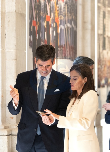 Le roi Felipe VI et la reine Letizia d’Espagne, inaugurent l'exposition "Felipe VI 2014 - 2024. Une décennie d'histoire de la Couronne d'Espagne" au Palais Royal à Madrid