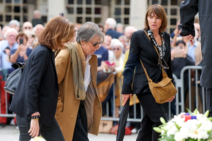 Jacques Dutronc et sa compagne Sylvie Duval - Arrivées aux obsèques de l'auteure-compositrice-interprète et actrice française Françoise Hardy au crématorium du cimetière du Père-Lachaise à Paris, France, le 20 juin 2024. © Jacovides-Moreau/Bestimage Arrivals at the funeral of French singer-songwriter and actress Françoise Hardy at Père-Lachaise Cemetery in Paris, France, on June 20, 2024.