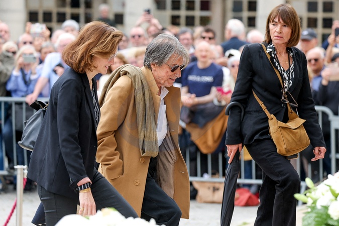 Jacques Dutronc et sa compagne Sylvie Duval - Arrivées aux obsèques de l'auteure-compositrice-interprète et actrice française Françoise Hardy au crématorium du cimetière du Père-Lachaise à Paris, France, le 20 juin 2024. © Jacovides-Moreau/Bestimage Arrivals at the funeral of French singer-songwriter and actress Françoise Hardy at Père-Lachaise Cemetery in Paris, France, on June 20, 2024.