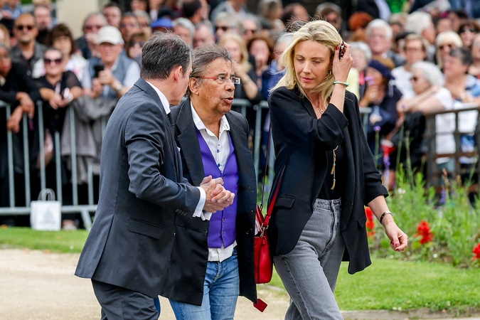 Laurent Voulzy et Isaure Le Faou - Arrivées aux obsèques de l'auteure-compositrice-interprète et actrice française Françoise Hardy au crématorium du cimetière du Père-Lachaise à Paris, France, le 20 juin 2024. © Jacovides-Moreau/Bestimage Arrivals at the funeral of French singer-songwriter and actress Françoise Hardy at Père-Lachaise Cemetery in Paris, France, on June 20, 2024.