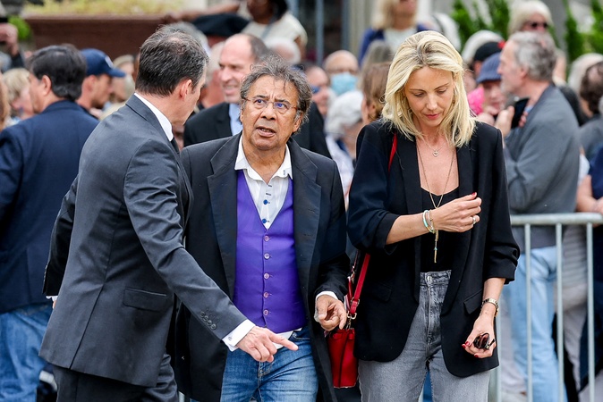 Laurent Voulzy et Isaure Le Faou - Arrivées aux obsèques de l'auteure-compositrice-interprète et actrice française Françoise Hardy au crématorium du cimetière du Père-Lachaise à Paris, France, le 20 juin 2024. © Jacovides-Moreau/Bestimage Arrivals at the funeral of French singer-songwriter and actress Françoise Hardy at Père-Lachaise Cemetery in Paris, France, on June 20, 2024.