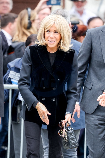 José Pietroboni, chef du protocole de l'Elysée, la première dame de France, Brigitte Macron et Tristan Bromet, chef de cabinet - Arrivées aux obsèques de l'auteure-compositrice-interprète et actrice française Françoise Hardy au crématorium du cimetière du Père-Lachaise à Paris, France, le 20 juin 2024. © Jacovides-Moreau/Bestimage Arrivals at the funeral of French singer-songwriter and actress Françoise Hardy at Père-Lachaise Cemetery in Paris, France, on June 20, 2024.