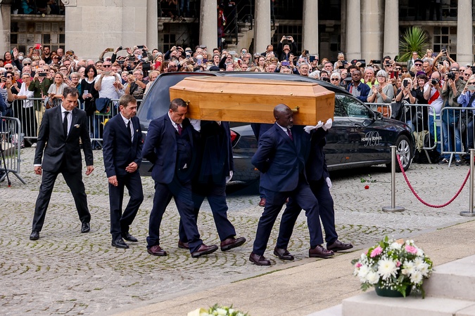 Arrivée du cercueil - Arrivées aux obsèques de l'auteure-compositrice-interprète et actrice française Françoise Hardy au crématorium du cimetière du Père-Lachaise à Paris, France, le 20 juin 2024. © Jacovides-Moreau/Bestimage Arrivals at the funeral of French singer-songwriter and actress Françoise Hardy at Père-Lachaise Cemetery in Paris, France, on June 20, 2024.
