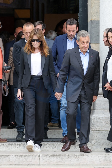 Nicolas Sarkozy et sa femme Carla Bruni - Sortie des obsèques de l'auteure-compositrice-interprète et actrice française Françoise Hardy au crématorium du cimetière du Père-Lachaise à Paris, France, le 20 juin 2024. © Jacovides-Moreau/Bestimage Exits at the funeral of French singer-songwriter and actress Françoise Hardy at Père-Lachaise Cemetery in Paris, France, on June 20, 2024.