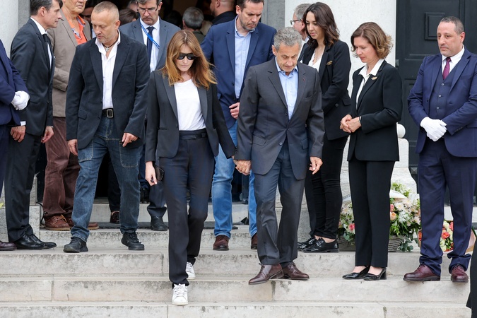 Nicolas Sarkozy et sa femme Carla Bruni - Sortie des obsèques de l'auteure-compositrice-interprète et actrice française Françoise Hardy au crématorium du cimetière du Père-Lachaise à Paris, France, le 20 juin 2024. © Jacovides-Moreau/Bestimage Exits at the funeral of French singer-songwriter and actress Françoise Hardy at Père-Lachaise Cemetery in Paris, France, on June 20, 2024.