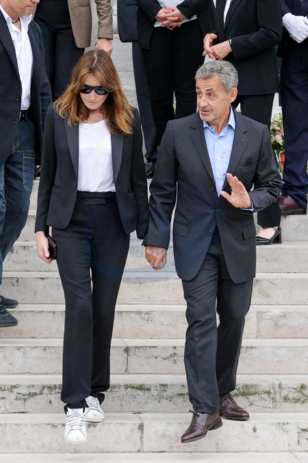 Nicolas Sarkozy et sa femme Carla Bruni - Sortie des obsèques de l'auteure-compositrice-interprète et actrice française Françoise Hardy au crématorium du cimetière du Père-Lachaise à Paris, France, le 20 juin 2024. © Jacovides-Moreau/Bestimage Exits at the funeral of French singer-songwriter and actress Françoise Hardy at Père-Lachaise Cemetery in Paris, France, on June 20, 2024.