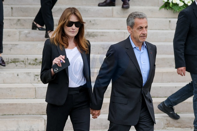 Nicolas Sarkozy et sa femme Carla Bruni - Sortie des obsèques de l'auteure-compositrice-interprète et actrice française Françoise Hardy au crématorium du cimetière du Père-Lachaise à Paris, France, le 20 juin 2024. © Jacovides-Moreau/Bestimage Exits at the funeral of French singer-songwriter and actress Françoise Hardy at Père-Lachaise Cemetery in Paris, France, on June 20, 2024.