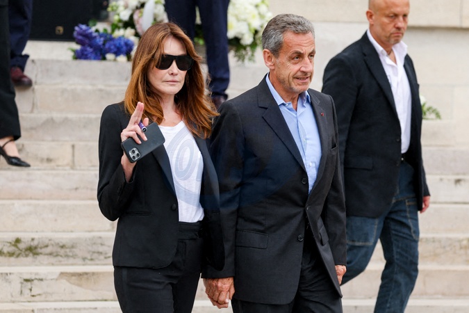 Nicolas Sarkozy et sa femme Carla Bruni - Sortie des obsèques de l'auteure-compositrice-interprète et actrice française Françoise Hardy au crématorium du cimetière du Père-Lachaise à Paris, France, le 20 juin 2024. © Jacovides-Moreau/Bestimage Exits at the funeral of French singer-songwriter and actress Françoise Hardy at Père-Lachaise Cemetery in Paris, France, on June 20, 2024.