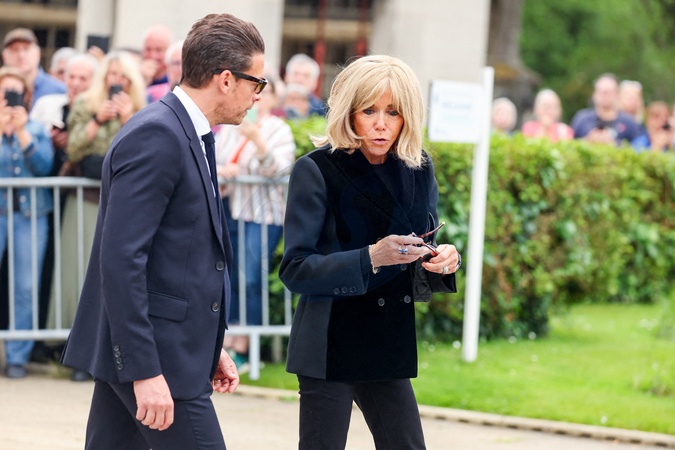 Brigitte Macron, la première dame de France - Sortie des obsèques de l'auteure-compositrice-interprète et actrice française Françoise Hardy au crématorium du cimetière du Père-Lachaise à Paris, France, le 20 juin 2024. © Jacovides-Moreau/Bestimage Exits at the funeral of French singer-songwriter and actress Françoise Hardy at Père-Lachaise Cemetery in Paris, France, on June 20, 2024.