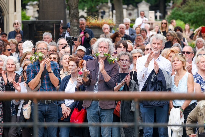 Les fans rendent un dernier hommage à F.Hardy - Sortie des obsèques de l'auteure-compositrice-interprète et actrice française Françoise Hardy au crématorium du cimetière du Père-Lachaise à Paris, France, le 20 juin 2024. © Jacovides-Moreau/Bestimage Exits at the funeral of French singer-songwriter and actress Françoise Hardy at Père-Lachaise Cemetery in Paris, France, on June 20, 2024.