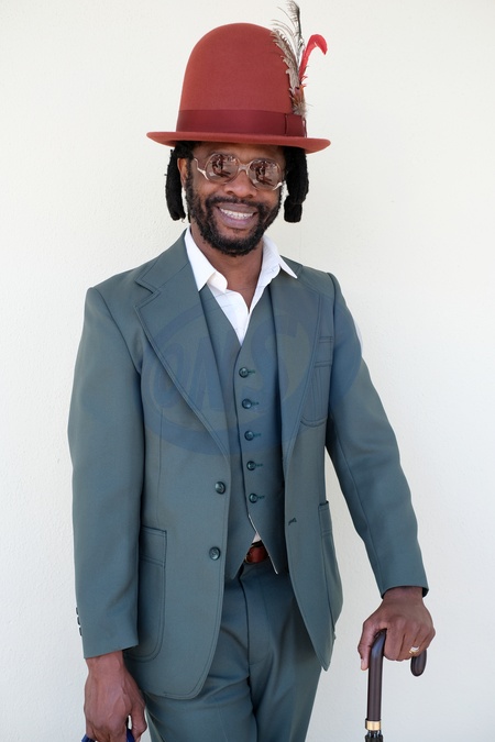 Stylish attendees on Ladies Day at Royal Ascot, Thursday 20 June 2024. Traditionally hats and fascinators are worn, but this image shows a more overall fashion look and its key points. Image shows a dapper man dressed in a dandy style., Credit:Pat Lyttle / Avalon